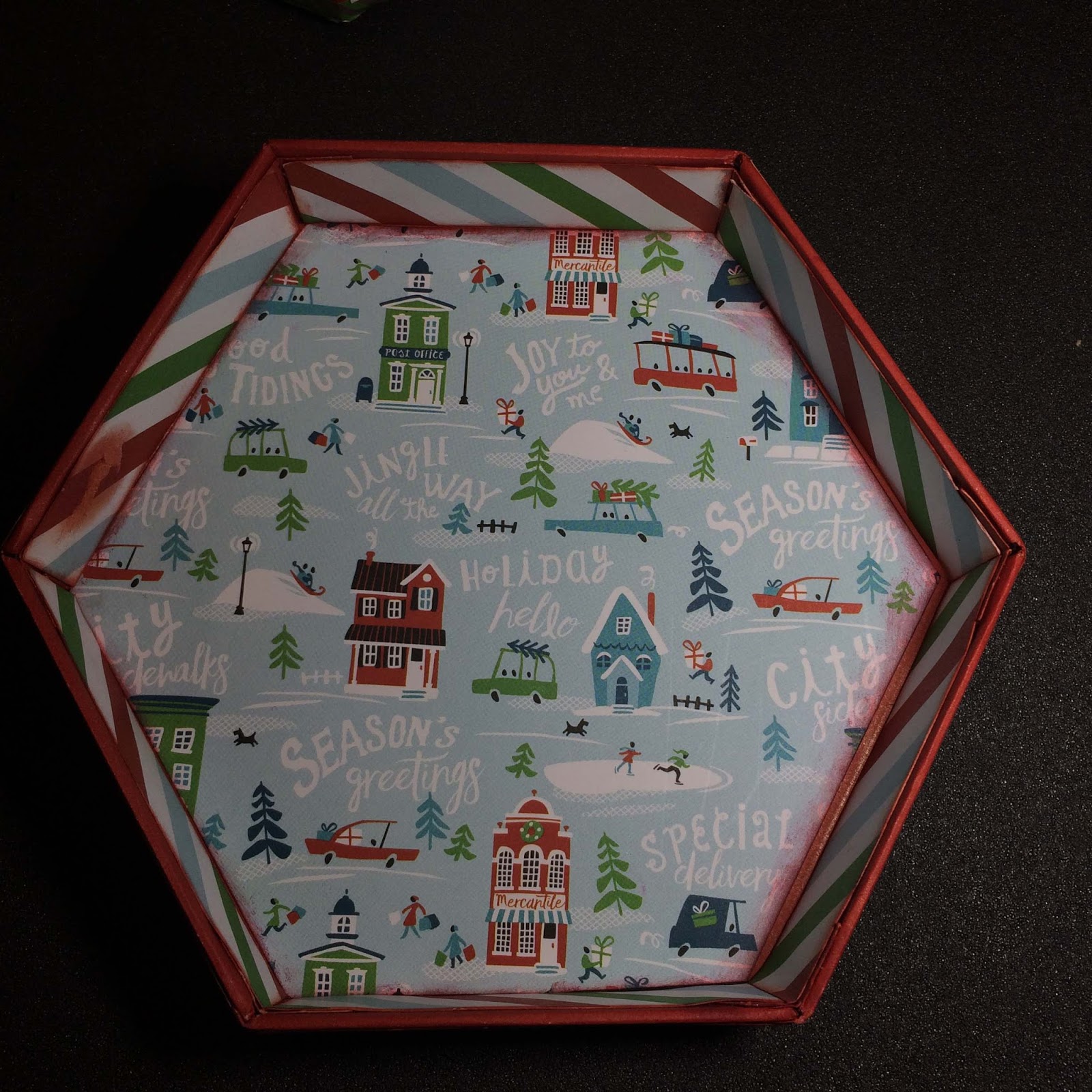 I created this hexagon shaped box by following a great tutorial by Alexandra M on YouTube. This box was decorated using the City Sidewalks Scrapbook Kit.